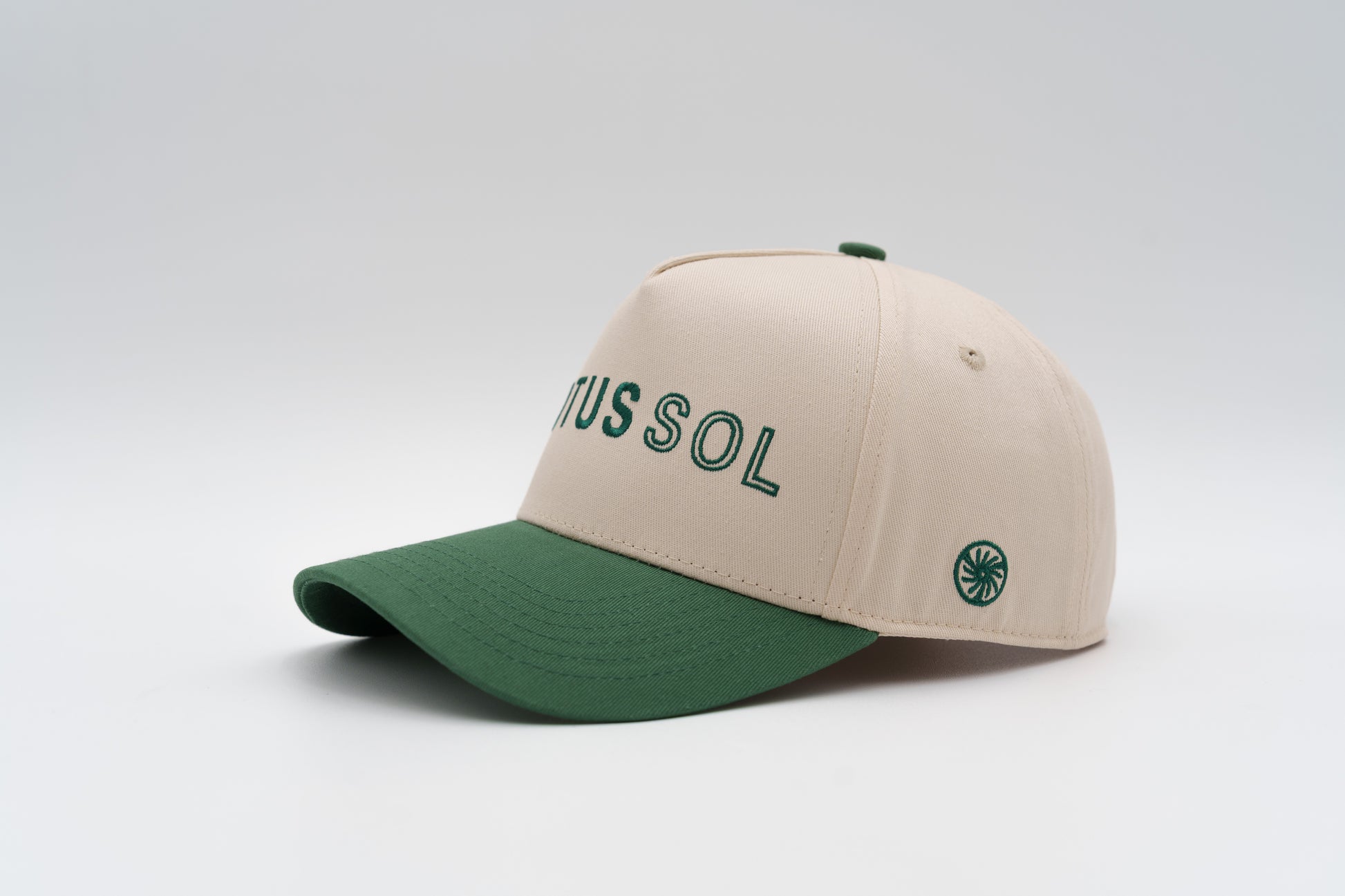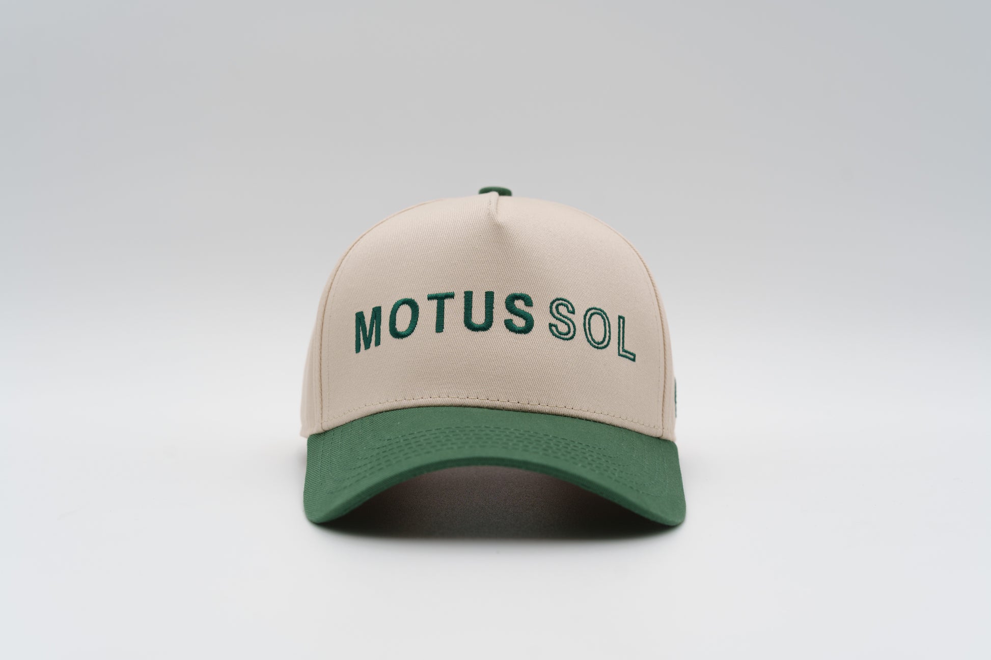 The Rolex Green & Natural High Profile Hat blends calm neutrality with rich contrast. Featuring a structured natural crown and a deep green bill, this cap delivers clean versatility with a nod to timeless style. Finished with green MOTUS SOL embroidery and our emblem side patch for an unmistakable signature.